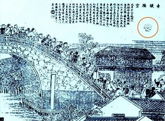 据报导,《赤焰腾空》是清代画家吴有如晚年作品,画面上是南京朱雀桥上出现奇怪飞行物的情景,当时朱雀桥上行人如织,却都在仰目天空,他们在干什么呢?