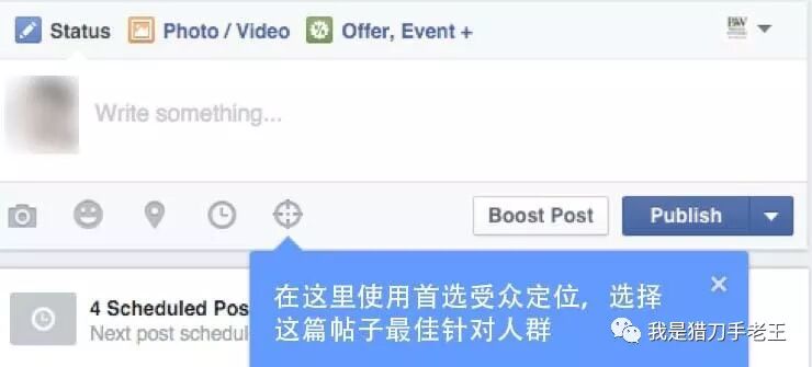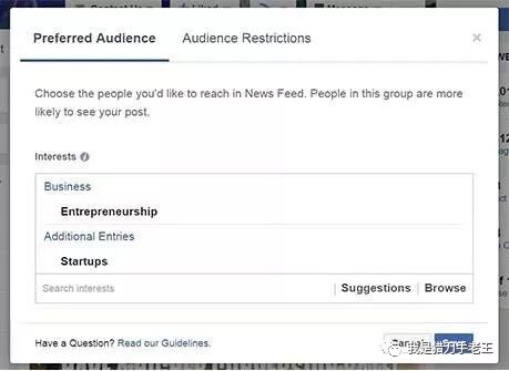 “首选受众定位”(preferred audience targeting)是Facebook新增的一个定位功能:这项新功能可让发帖人针对某一帖子进行特定的受众定位推广,而且免费!没错:你可以选择针对特定人群而发帖,也只有被你选择的人才会看到你的发帖!这实际上是Facebook让权于商家(发帖人)的一种姿态:让商家自己先进行受众过滤、主动滤掉那些不太可能对某条讯息感兴趣的人;对于Facebook和用户来说,这自然是有利的;而对于商家来说,也是利大于弊:比起之前懒惰的“广而告之”,商家被迫做出更有选择性和针对性的发言,以增强互动;被迫把重量不重质的讯息发布,变成更有针对性、社群性和重质不重量的对话。这一新功能的核心便是:想要提高互动、必先停止噪音(不要打扰对你无感的用户);想要有效对话、必先尊重用户(给予有价值的讯息)。