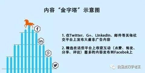 必须承认,你的内容不可能篇篇都是佳品、更不可能都赢得成百上千的点赞和分享。必须要把那些最有传播价值、最容易引起分享的“塔尖”内容找出来放在Facebook上:Facebook的新算法已经告诫我们:大量的内容发布不仅无效、而且有害!如何勘测、评估、选取“塔尖”内容将直接决定你的Facebook的互动率。