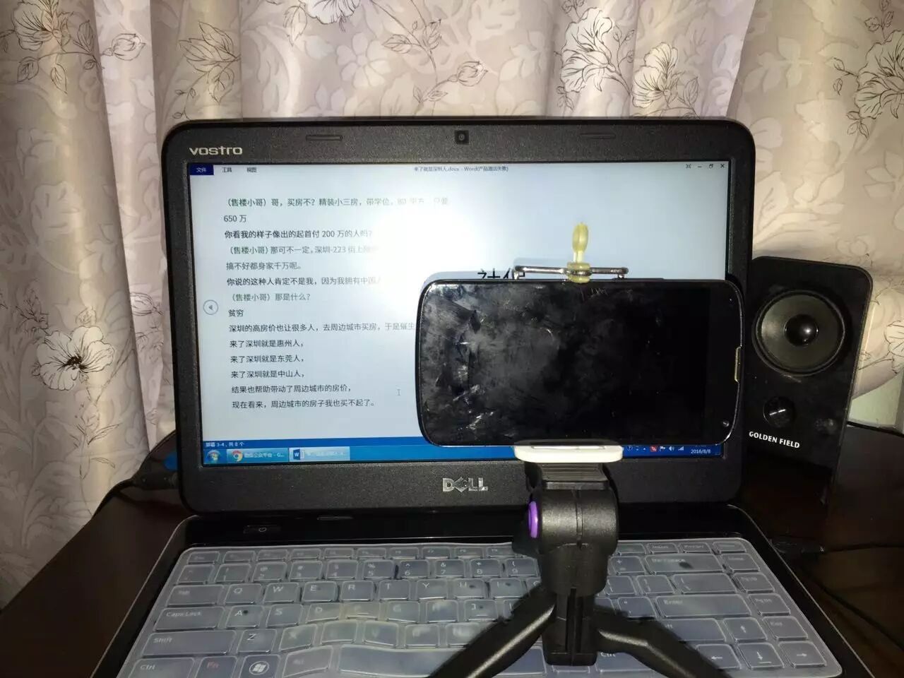 手机就架在电脑前面