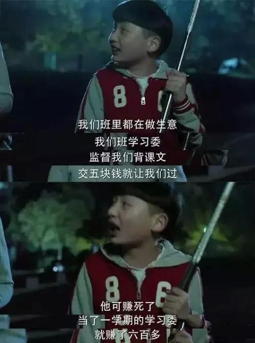 正如小皮球回答的:“不花钱办不成事,现在都这样。”在操场上,小皮球又“爆出”了一个现象:班上的学习委员监督同学背课文,交五块钱就让“过”;班上的同学要抄自己的作业,一人收五块钱……这样的“金钱交易”似乎已经在剧里被表达得淋漓尽致。